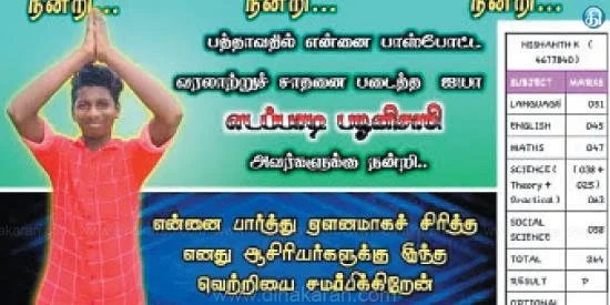 பத்தாம் வகுப்பில் என்னை ‘பாஸ்’ ஆக்கிய முதல்வருக்கு நன்றி: ஏளனமாக சிரித்த ஆசிரியர்களுக்கு சமர்ப்பணம் - மாணவனின் போஸ்டரால் பரபரப்பு! - Kalviseithi - No:1 Educational website in Tamilnadu