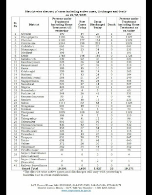 ▪️தமிழகத்தில் ( 22.08.2021 ) இன்று 1,630 பேருக்கு கொரோனா பாதிப்பு.