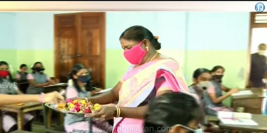 தமிழகத்தில் கொரோனா பரவல் குறைந்து வருவதால் நீண்ட இடைவெளிக்கு பின்னர் பள்ளி, கல்லூரிகள் திறக்கப்பட்டன. மாணவர்களுக்கு பூ, இனிப்புகள் கொடுத்து ஆசிரியர்கள் வரவேற்பு அளித்தனர். கடந்த ஜனவரியில் 10,12ம் வகுப்பு மாணவர்களுக்கு மட்டும் வகுப்புகள் செயல்பட்டு வந்தன. கொரோனா பரவல் அதிகரிப்பு காரணமாக ஏப்ரல் மாதத்தில் பள்ளிகள் மூடப்பட்டன. தற்போது கொரோனா பரவல் குறைந்ததை அடுத்து 9 முதல் 12-ம் வகுப்பு வரை பள்ளிகள் மற்றும் கல்லூாிகள் இன்று திறக்கப்பட்டன. வாரத்தில் 6 நாட்கள் வகுப்புகள் நடைபெற உள்ளது. வகுப்புக்கு 20 மாணவர்கள் என 50% மாணவர்களுடன் பள்ளிகள் செயல்பட உள்ளது.