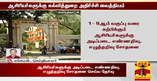 ஆசிரியர்களுக்கு தேர்வு - கல்வித்துறையின் அதிர்ச்சி வைத்தியம் - ஆசிரியர்களுக்கு நாளை முதல் ஆன்லைனில் நடைபெறக்கூடிய தேர்வுடன் கூடிய பயிற்சி குறித்த தந்தி டிவி செய்தி தொகுப்பு.
