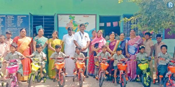 ராமநாதபுரம் மாவட்டம், கடலாடி பஞ்சாயத்து மேலக்கடலாடியில் ஊராட்சி ஒன்றிய நடுநிலைப் பள்ளி உள்ளது. இங்கு 128 மாணவர்கள் படித்து வருகின்றனர். 6 ஆசிரியர்கள் பணியாற்றி வருகின்றனர். இப்பள்ளியில் மாணவர் சேர்க்கையை அதிகரிக்க, தலைமையாசிரியையான சற்பிரசாதமேரி தனது சொந்த பணத்திலிருந்து ஒன்றாம் வகுப்பு படிக்கும் 10 மாணவர்களுக்கு இலவசமாக சைக்கிள் வழங்கினார். இந்த சைக்கிள் வழங்கும் நிகழ்ச்சி பள்ளியில் நடந்தது. கடலாடி சமூக பாதுகாப்பு திட்ட தாசில்தார் செந்தில்வேல் முருகன் தலைமை வகித்தார். பெற்றோர் ஆசிரியர் கழக ராமச்சந்திரன் முன்னிலை வகித்தார்.