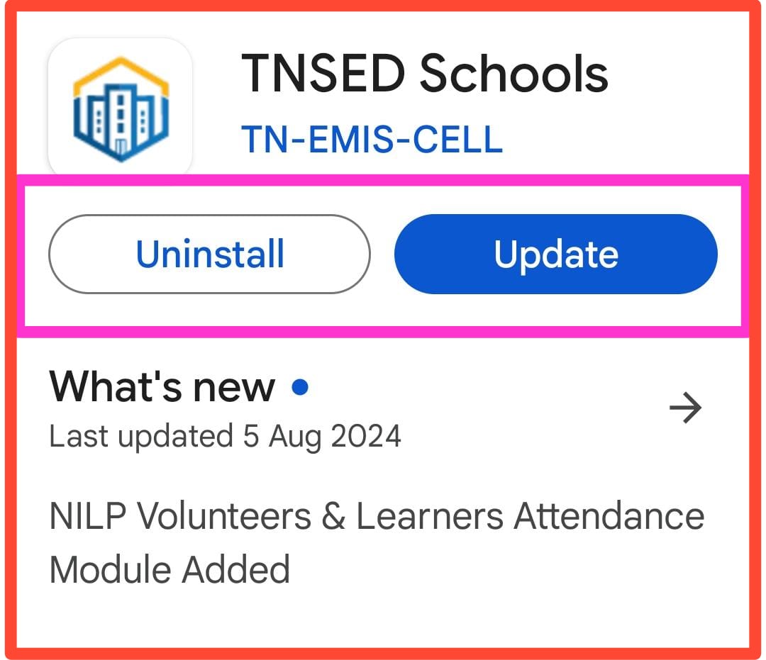TNSED Schools App - New Version 0.1.8, Date : 05.08.2024
