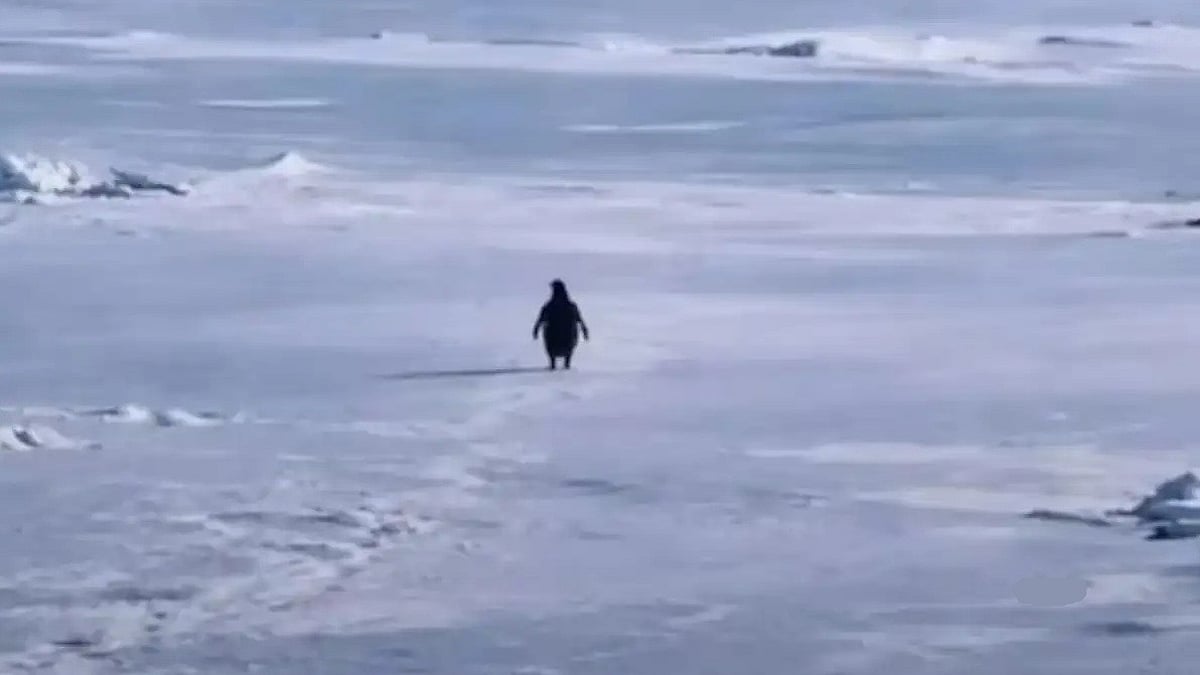 அந்தக் காட்சியில், ஒரு பென்குயின் திடீரென தனது கூட்டத்தை விட்டு விலகி, சுமார் 70 கி.மீ. தொலைவில் உள்ள மலைத்தொடரை நோக்கிச் செல்கிறது. அதனுடன் வந்த மற்ற பென்குயின்கள் உணவு மற்றும் உயிர்வாழ்வதற்காக கடலை நோக்கிச் செல்லும் நிலையில், இந்த பென்குயின் மட்டும் தனியாக மலையை நோக்கிச் செல்வது அந்தக் காணொலியில் தெரிகிறது. அங்கு, கடல் இல்லை, உணவு இல்லை. மலைகள், பனி, உறைபனி மட்டுமே உள்ளது.